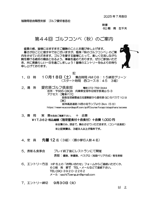 旭陵同窓会関西支部ゴルフ愛好家の皆様へ