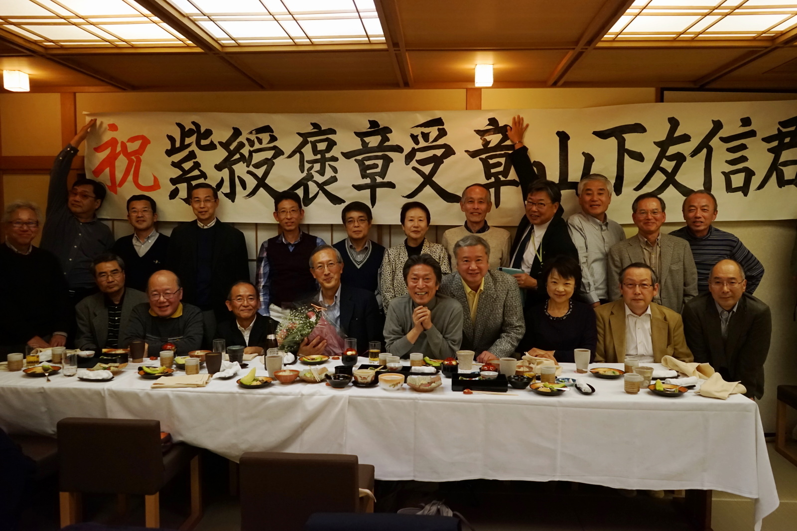 今回の幹事は秋の褒章で紫綬褒章を綬章された山下友信東京大学名誉教授でした。1年前に幹事を決めていたとはいえ、参加者の皆は恐縮、且つおおいに盛り上がりました。宴会は嬉しい綬章のお祝い会となりました。
