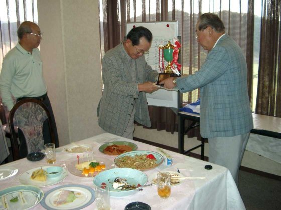甲斐支部長からカップを受ける優勝者福田さんです。