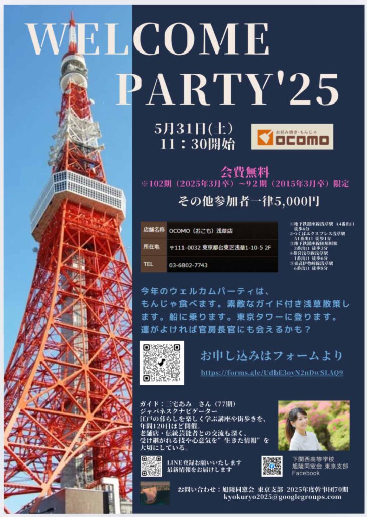 旭陵同窓会 2025 ウェルカムパーティー開催案内